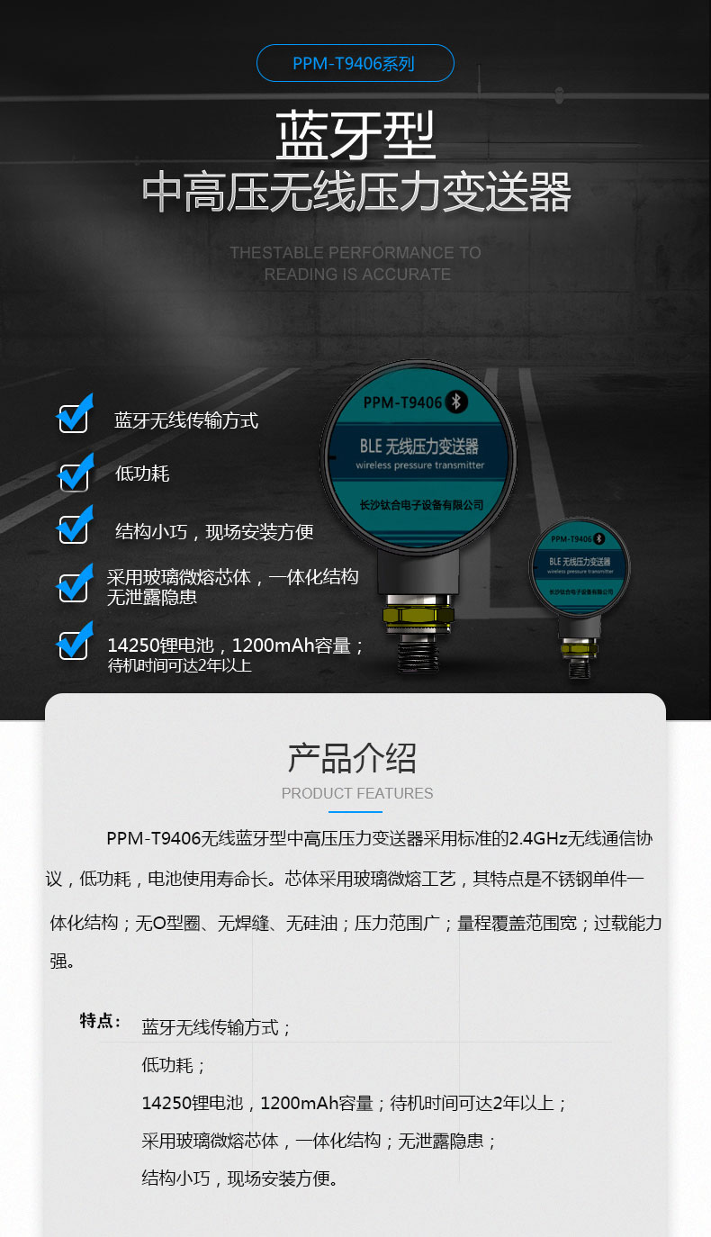 PPM-T9406藍牙型中高壓無線壓力變送器